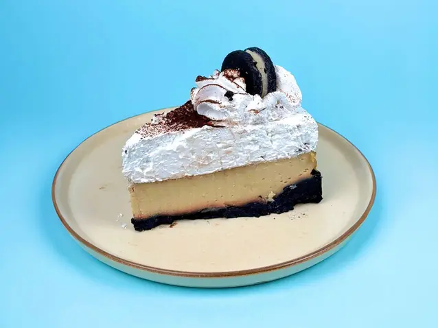 Deliciosa torta con base de avena y carbón activado, queso fresco, cacao orgánico, proteina whey, panela y stevia.