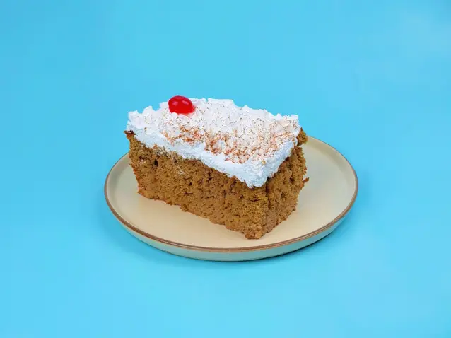 Suave y esponjoso pastel a base de avena, claras de huevo, proteína, leche de soya, leche deslactosada y stevia.